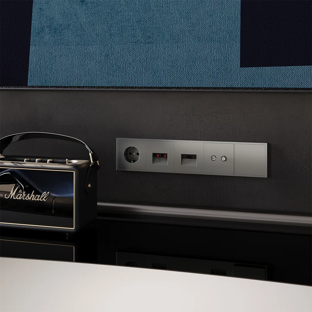 Розетка легко комбинируется с другими устройствами серии — например, можно разместить рядом электрическую розетку для питания ТВ и USB-порт для приставки в одной рамке, создав функциональный и стильный блок управления.
